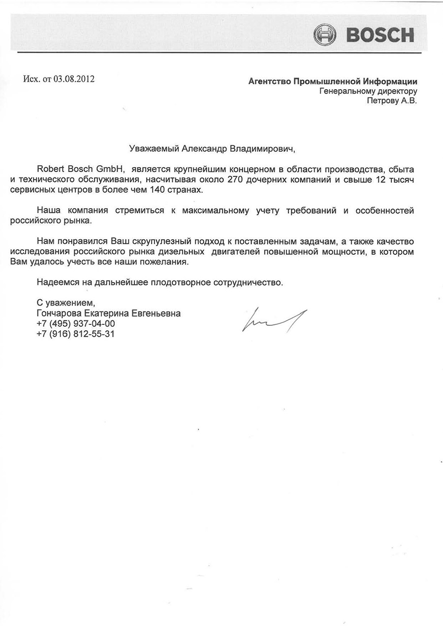 Нам понравился Ваш скрупулезный подход к поставленным задачам, а также качество исследования российского рынка дизельных двигателей повышенной мощности, в котором Вам удалось учесть все наши пожелания.