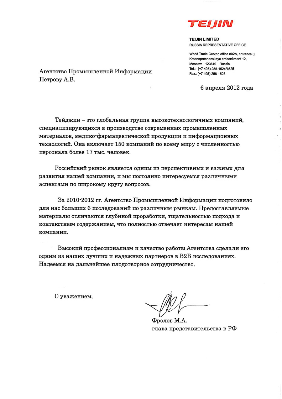 За 2010-2012 гг. Агентство Промышленной Информации подготовило для нас больших 6 исследований по различным рынкам. Предоставляемые материалы отличаются глубиной проработки, тщательностью подхода и контекстным содержанием, что полностью отвечает интересам нашей компании.