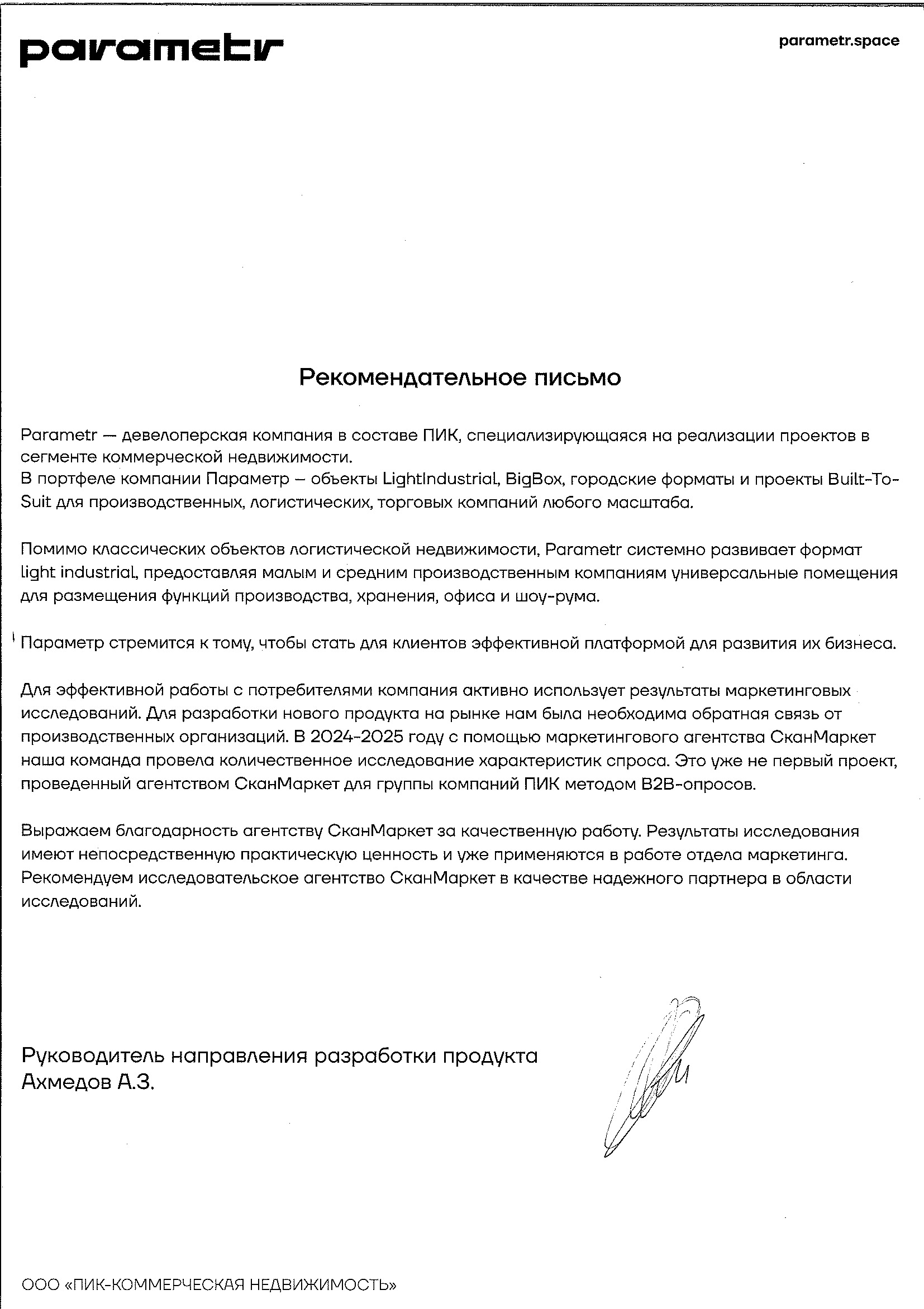 Parametr - девелоперская компания в составе ПИК, специализирующаяся на реализации проектов в сегменте коммерческой недвижимости.